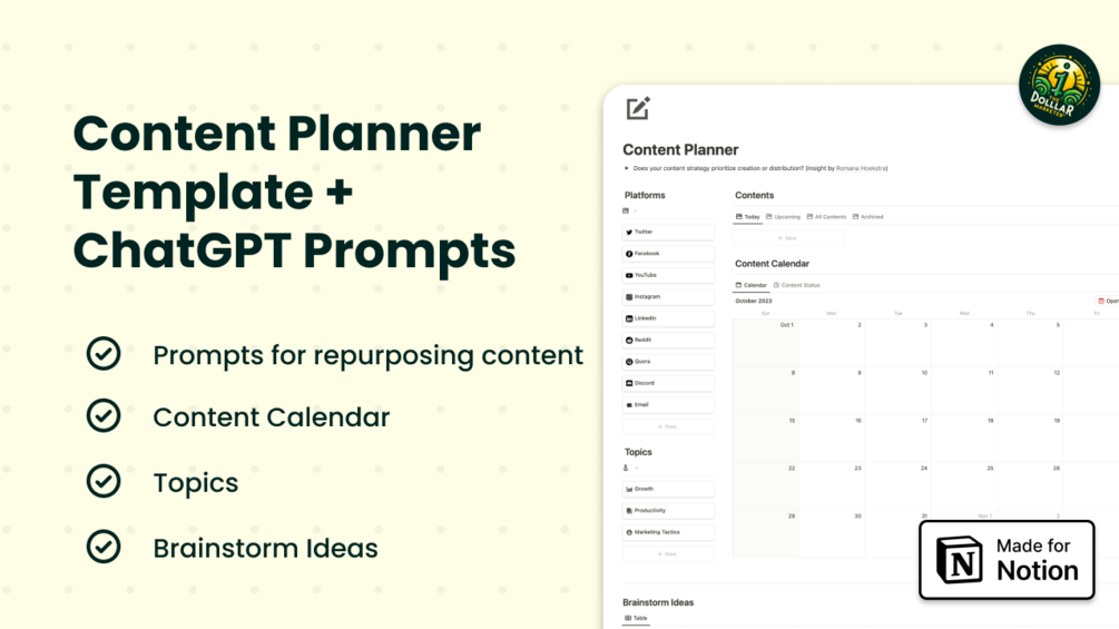 Take control of your content strategy and unlock your brand's full potential with our Content Planner Notion Template!